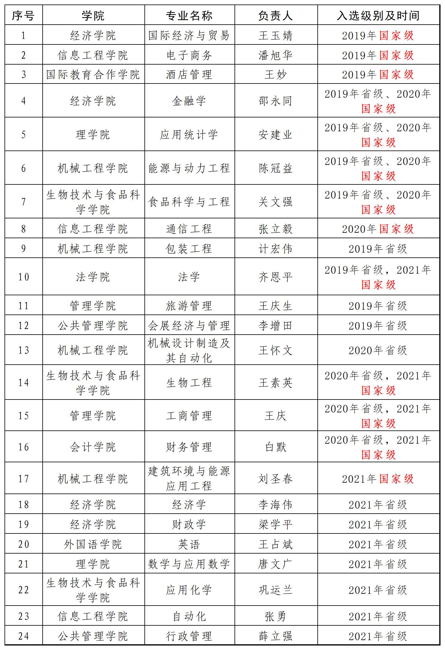 国家级、天津市级一流本科建设专业