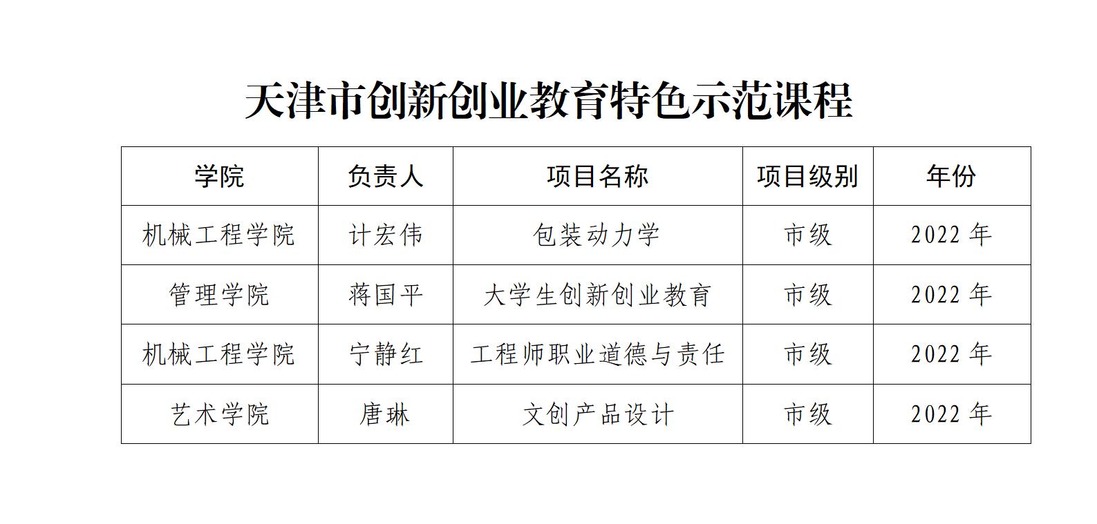 天津市创新创业教育特色示范课程