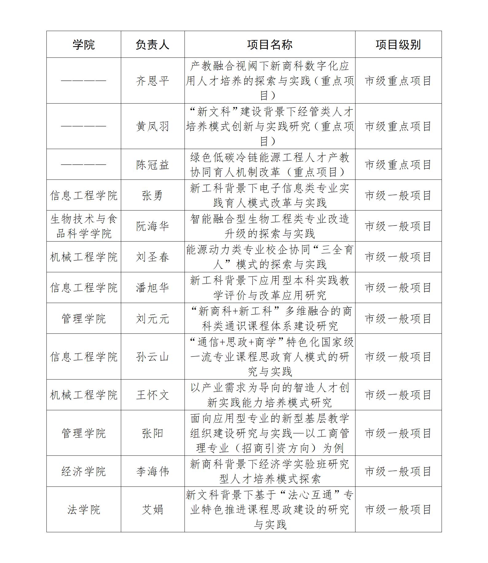 天津市普通高等学校本科教学质量与教学改革研究项目立项名单(2023年)