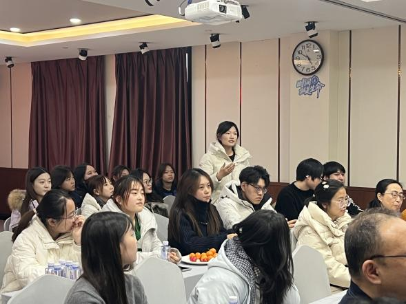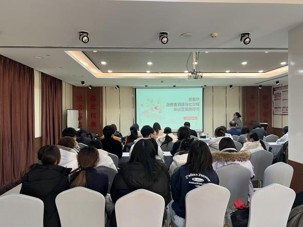 交流现场,同学们以老美华提供的情感营销和社交媒体营销为切入点,进行了《老美华消费者洞察与社交媒体运营策略》报告展示。报告结合前期调研数据,从目标客群画像分析、社交媒体平台特性、内容创作方向及传播路径优化等方面,呈现为老美华量身打造的数字化运营方案,获得企业领导的细致点评与充分关注。